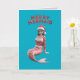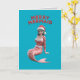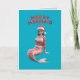 Uma sereia em listras de Natal está vestindo um chapéu de Papai Noel.