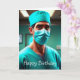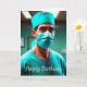 Este cartão de aniversário divertido tem um cirurgião pronto para operar.