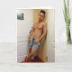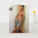 Este cartão caracteriza uma fotografia de um homem novo "sexy" que o faça querer saber o que seria como quando o serviço de sala permanece para a noite!