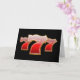 Sete Sortudos - Sênciãos vermelhos no cartão de saudação preto de fundo. MEU TRABALHO ORIGINAL EM zazzle.com/virginia5050*, PRESENTES INTERNACIONAIS em zazzle.com/InternationalGifts*, RETIREMENT GIFT STORE em zazzle.com/RetirementGiftStore e FLORIDA GIFT STORE em zazzle.com/FloridaGiftStore*