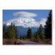 Montagem bonita Shasta com uma nuvem lenticular que forma na cimeira.