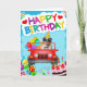 Um cão pastor australiano dirigindo com balões de aniversário e bolo é um cartão de aniversário perfeito para alguém que ama cachorros-dachshund. Qualquer mãe ou pai australiano Shepherd amará isso.