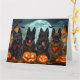 Libere o espírito assustador com esta design sombria do Dia das Bruxas apresentando um bando de cachorros sob um céu escuro e iluminado, cercado por morcegos voadores e abóboras brilhantes. Perfeito para aqueles que amam um toque de diversão terrível com seus amigos peludos!