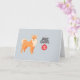 Cartões de natal da sua raça favorita de cães. O cartão de Natal dobrado inclui o cão Shiba Inu com texto "Feliz Natal" e Enfeites de natal vermelho.