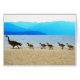 Os gansos do Canadá são escoltados ao longo da costa do lago Pend Oreille, em Idaho norte, por um adulto. Esta é uma cena típica no Parque City Beach, em Sandpoint.