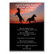 Essa bela bênção de casamento apache, que começa com "agora você não sentirá chuva... com uma bela silhueta de dois cavalos árabes... enrolando em uma planície com um belo sol laranja e azul com as nuvens sobre a cabeça e uma silhueta de algumas árvores no fundo do chão