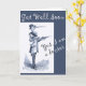 Consiga logo uma carta com uma ilustração de bobo vintage de uma cegonha em roupa masculina e chapéu de cima com seringa. "Sim, sou um Doutor" a meio da descida e "Saia logo" no topo. Cor branca e azul.