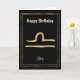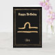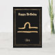 Mande um cartão de saudação de aniversário feliz personalizado para a sua Libra favorita com este ouro martelado estilizado Libra, o sinal de estrela zodiac da astrologia Scales em um quadro dourado de linha dupla em um fundo preto. O texto do sinal de Parabéns e Zodíaco na frente do cartão pode ser personalizado se você tiver outra saudação em mente. Dentro do cartão que você pode adicionar o nome da garota ou garoto de aniversário acima do texto que diz: Você vai ter um aniversário incrível, ele está escrito nas estrelas. Um cartão personalizado divertido para alguém nascer sob o sinal de estrela de Libra.