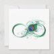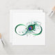 O símbolo do infinito com uma pena brilhante, verde, de pavão artístico sobre um fundo branco. Tatuagem.