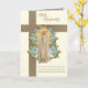 Apresentando um belo cartão de compaixão fúnebre, desenhado por costume, com uma imagem da Bênçada Virgem Maria, Nossa Senhora de Fátima sobreposta em uma cruz de ouro. Dentro é a mesma imagem com um verso de script e uma borda floral azul.