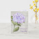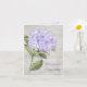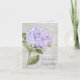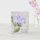 Cartão de condolências com uma hidrangea púrpura muito delicada e azul sobre um fundo de madeira leve