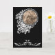 Cartão de compaixão do anjo da Guarda - A frente está em preto e branco com rolagem elegante e a ilustração antiga da face de um anjo com luz solar passando. O dentro à esquerda mostra toda a ilustração do tom de sépia vintage do anjo na floresta com aves. Um poema sobre a perda de um ente querido e estar sob o cuidado de um anjo da guarda está à direita, que pode ser mudado ou apagado inteiramente. Personalizar texto ou adicionar uma assinatura ao cartão espiritual.