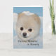 Um cão pomeranian bonito e macio com os grandes olhos escuros é misturado em um fundo do céu e das nuvens neste cartão de simpatia para alguém que perdeu um cão de estimação. Uma oferta da simpatia neste tempo deixará seu amigo saber que você está pensando deles como a obtenção através deste coração mesmo que quebra o tempo. O verso interno é um modelo do texto e mudado facilmente ou suprimido.