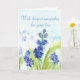 Um cartão de simpatia pensativo decorado com as flores azuis macias do larkspur pintadas na aguarela. Cartão bonito para enviar um pensamento de você a um amigo que passa com uma estadia difícil. Você pode igualmente personalizar a parte dianteira e o interior com suas próprias mensagens, pias batismais e cores da pia batismal.