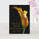 Um lírio de arum ouro está iluminado do lado. Uma flor perfeita para transmitir palavras de simpatia.