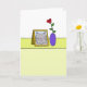 Um desenho de um gato cinza em uma figura famosa e uma rosa vermelha em um vaso ao lado da foto, para significar um animal de estimação muito amado e perdido.