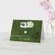 Cartão de condolências de golfe representando um clube de golfe solitário, bola e luva em uma cama de grama verde.