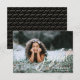 A letra Elegante Brush Script para a palavra "Joyful" com um toque de ouro (impressão) melhora a aparência deste chic e do cartão de Natal personalizado. Escolha a foto perfeita e personalize a mensagem. Não se esqueça de incluir seu nome de família. Fundo preto com "alegria" dourada num padrão nas costas.