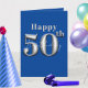 Cartão Simples Azul Real e Prata 50º Aniversário