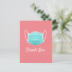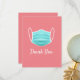 Uma simples mensagem sincera que pode ser personalizada com a sua própria mensagem para funcionários médicos, trabalhadores essenciais, membros da comunidade, socorristas e trabalhadores da linha de frente. Gráfico de máscara facial azul em fundo rosa com fonte branca.