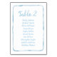 Encantando Cartões de Gráfico de Bancos Personalizados com Números de Tabela! Cada placa apresenta um quadro azul claro, branco e desenhado à mão, sobre um fundo branco nítido, adornado com uma "mesa" manuscrita original e uma lista de nomes personalizados. O que torna estas cartas verdadeiramente mágicas é o seu design reversível: azul claro de um lado e branco do outro, permitindo-lhe escolher a cor perfeita para complementar as suas decorações. Projetadas como modelo para uma personalização on-line fácil, essas placas oferecem conveniência sem sacrificar o estilo. Simplesmente personalize os detalhes para se adequar à sua visão. Escolha designs de quadros incompatíveis no mesmo conjunto de coleções para uma sensação ainda mais divertida. Adicione um toque de capricho à sua recepção e assegure-se de que todos os hóspedes encontram o seu lugar com facilidade. Com as nossas cartas de números de mesas divertidas e personalizadas, sua celebração é certamente um caso encantador cheio de amor e riso. Que a magia comece!