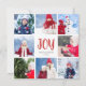 O costume disponível imprimiu cartões com fotos do feriado com modelos simples para a personalização. Este design minimalista moderno tem um modelo quadrado da colagem da foto da grade em um cartão liso. A mensagem lê a "ALEGRIA" personalizada com seu nome de família e o ano ou o outro texto feito sob encomenda. Simples, limpo e clássico com as 8 fotos feitas sob encomenda em uma beira quadrada em torno do texto. O verso tem um teste padrão da listra da aguarela ou usa o espaço para fotos e o texto adicionais. Use as ferramentas de design para editar o texto, adicione mais fotos e criar original de um design de cartão com fotos amável do feriado.
