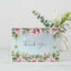 Simples peonias rosa, luzes de cordas e Cartões de agradecimentos de Casamento Verde. Facilmente personalizado! Coordenar itens disponíveis aqui na minha loja: www.zazzle.com/marstondesigns