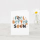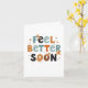 Este cartão de saudação 'ficar bem' apresenta uma mensagem alegre e colorida que diz "Sinta melhor em breve." A letra divertida e escrita à mão adiciona um toque pessoal, com letras variando em tamanho e cores como azul claro, preto, laranja e marrom. As pequenas ilustrações do auxílio à banda acompanham cada palavra, pontilhadas em torno das letras do cartão. As bandas-auxiliares são um toque bonito, com coloração bege e manchas castanhas. No geral, este cartão mostra calor e positividade, perfeito para enviar vibrações curativas a um ente querido necessitado. 🩹 🧡 Com um design encantador e uma mensagem reconfortante, este cartão de saudação "ficar bem" traz certamente um sorriso a qualquer um que se sinta debaixo do tempo. A combinação de texto colorido e ilustrações lúdicas de ajuda à banda cria uma vibração leve e amigável que é tanto eloquente quanto sincera. A mistura de letras azuis-claras, negras, laranja e castanhas contra um pano de fundo branco faz com que haja um contraste visualmente atraente, pegando no olho e espalhando bons desejos. Seja para um amigo, membro da família, ou colega, este cartão é uma maneira séria de mostrar a alguém que você se importa e que está pensando neles durante um período difícil. Vai logo! 🩹 💙