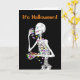 Um cartão de saudação do Dia das Bruxas com meu personagem esquelético 3d tocando no doce do Dia das Bruxas. O texto personalizável diz "É o Dia das Bruxas!" Meu dentro verso da placa também pode ser personalizado.