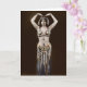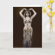 Fotografia vintage divertida de uma mulher em uma fantasia espessa do Oriente Médio com miçangas na saia e cabeça