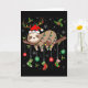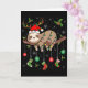 Cartão Sloths Xmas Lighting Reindeer Santa Hat Sloth Chri