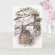 Este cartão de aniversário apresenta uma típica cena de inverno: um coelho castanho de cotovelo com orelhas grandes está amontoado sob um pinheiro procurando abrigo da neve. Um coelho menor é o dentro. O texto diz: Feliz Aniversário! Que todos os seus desejos se realizem no seu dia especial... Ele pode ser personalizado para atender às suas necessidades.