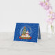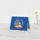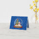 Snowman Snow Globe Card Snowy Scenery com uma árvore de Natal decorada, presentes, arcos e renas com lenços. Não agite muito duro. Feliz feriado feito em carta branca.