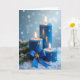 The holiday card shows three bright blue candles standing in the snowy scene. Each candle is a different height, with shiny gold stars on them. The candles glow warmly and shimmer on the snow. A pretty blue ribbon with a gold star on top ties them together nicely. Snowy pine branches stick out from the side. The background is blurry blue with snowflakes floating around. The candles look like they're covered in sugar or snow. This card feels peaceful and elegant, perfect for the holidays.🎅🏼🎄🎁 It's a lovely way to spread some holiday cheer!