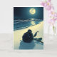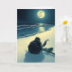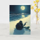 Um cartão só para dizer que te amo. Uma noite serena na praia. Um rosa preto solitário sobre a areia. Uma lua de cheio no céu. Ondas caem em uma costa arenosa.