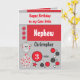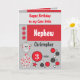 Personalize este cartão de cumprimentos de aniversário, para o seu lindo sobrinho, com seu nome e idade. Lembre-se de fazer um desejo. Projetado em cinzas brancas, vermelhas, com girafa fofa, estrelas e pontos.