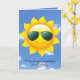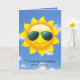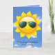 Cartão sol do aniversário com os óculos de sol no sol com