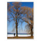 Uma figura solitário contempla o lago congelado Cayuga salgueiros dourados de Ithaca, N.Y. está para fora contra um céu azul puro.