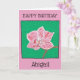 Diga Feliz Aniversário com este cartão bonito com um desenho original de uma flor de orquídea rosa solteiro em um fundo verde e rosa. É simples e bonito. Você pode personalizar a saudação e o nome na frente e adicionar suas próprias palavras dentro. O trabalho de arte é original, e só está disponível em The Art of Being Beth.