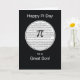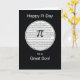 Mande seus desejos de Pi Day para seu filho com este cartão preto. Um círculo branco é preenchido com os algarismos irracionais de Pi, à medida que o símbolo aparece à frente.