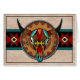 Crânio pintado do búfalo no protetor de couro. Customizável - substitua o texto "[sua mensagem pessoal aqui]" com sua própria mensagem.