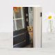 Este cartão de saudação alegre mostra uma fotografia de um sorridente cão que está olhando pela porta da frente. O texto personalizável diz: "Só queria dizer oi! Espero que esteja indo bem!"