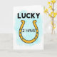 Este design apresenta uma ferradura dourada centrada em um fundo azul-celeste pálido com uma textura suave, semelhante à aquarela, que parece leve e arejada. A ferradura é delineada com linhas escuras e preenchida com um tom amarelo-dourado quente, como um amuleto da sorte que você guardaria perto de alguém que ama 💚. Acima dela, "LUCKY" está posicionado perto do topo em letras sans-serif pretas e fortes, destacando-se claramente contra o azul. Dentro da curva da ferradura, "2 HAVE" está escrito em um estilo manuscrito preto mais solto, aninhado perfeitamente no espaço aberto, como um bilhete particular entre amigos. Pequenos acentos em forma de lágrima em um tom azul mais profundo pontilham a borda interna da ferradura, ecoando o fundo e adicionando um ritmo suave ☘️. O layout simples deixa bastante espaço para respirar, fazendo com que as palavras e o símbolo pareçam estar inclinados um para o outro de uma maneira tranquila e afetuosa. A ferradura central permanece o foco principal, emoldurada pelo campo azul calmo e pelas gotas azuis espalhadas ao longo da sua borda interna.
