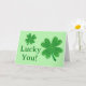 Este cartão de saudação apresenta um design de trevo Celta inspirado em quatro folhas com as palavras Lucky You! na frente com a saudação "Feliz aniversário nesta Rua especial. Dia de Patrick! Você tem tanta sorte de ser nascer num dia tão maravilhoso! Espero que todos os seus desejos de aniversário se realizem" no dentro que pode ser personalizado ou removido.