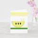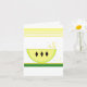 Design de fruta excelente com uma fatia de limão com sementes. Bordas de listras amarelas no topo e verdes e amarelas no fundo. Personalizar conforme desejado. Perfeito para um obrigado ou só para dizer olá.