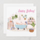 Envie este doce cartão de aniversário de autoatendimento à sua mulher favorita na sua vida! Esta carta de saudação plana apresenta uma mulher sentada numa banheira de banho a desfrutar de um copo de vinho cercado por plantas e todas as coisas de autocuidado e relaxamento. Pode ser personalizado de acordo com o seu gosto. Foto de macrovetor em Freepik.