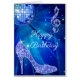 O elegante cartão de aniversário das mulheres com brilho e glamour. Os belos cartões azuis e brancos das mulheres com uma bola retrorreflectora divertida, imagens impressas glamourosas de rochas, brilho, sequências, joias de borda brilham calçados de salto alto e estilettos, e notas musicais brilhantes/notas musicais com faíscas em um vibrante fundo azul e cintilações. Chic, clássico, fofo, giro, cartões modernos para mulheres e raparigas em cores modernas e modernas. Estes ranhuras, rico, na moda, sofisticados, bonito, cartões giros. NOTA: todos os produtos do Zazzle têm imagens impressas em formato plano. Se precisar de assistência para personalizar seu produto, entre em contato comigo através da minha loja e eu ficarei feliz em ajudar.