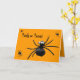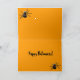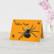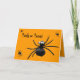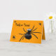 Esta carta de Halloween apresenta uma grande aranha preta de olhos insetos e muitas pequenas em um ouro de fundo organizado dizendo "truque or trata". Eles não assustarão ninguém, mas você tem certeza de que vai rir muito. Mais aranhas estão espalhadas na dentro do cartão. Todo texto é personalizável.