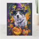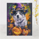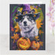 Cartão Spooky Akita Halloween Witch e Pumpkin