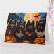 Libere o espírito assustador com esta design sombria do Dia das Bruxas apresentando um bando de cachorros sob um céu escuro e iluminado, cercado por morcegos voadores e abóboras brilhantes. Perfeito para aqueles que amam um toque de diversão terrível com seus amigos peludos!